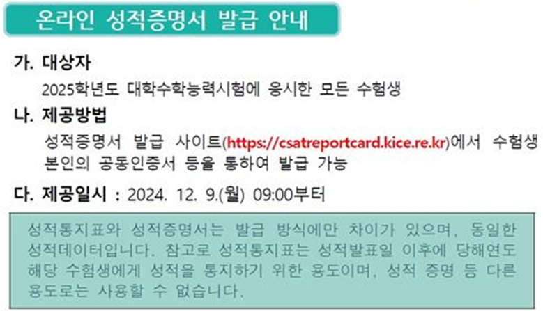 1. 2025학년도 수능 성적표 발급 날짜와 시간