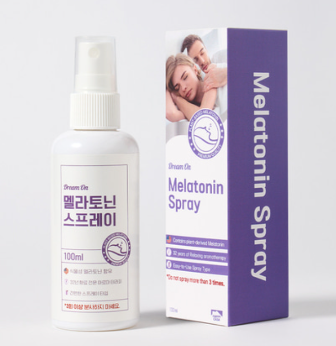 멜라토닌은 우리 몸에서 자연스럽게 생성되는 호르몬으로, 명암에 따라 수면 리듬을 조절하는 역할을 해요. 멜라토닌 제품은 스프레이 형태로 되어 있어 사용이 간편하고, 공기중 떠다니는 멜라토닌 성분을 호흡기로 빠르게 흡수되어 자연스럽게 입면에 들어가는 장점이 있다고 해요.