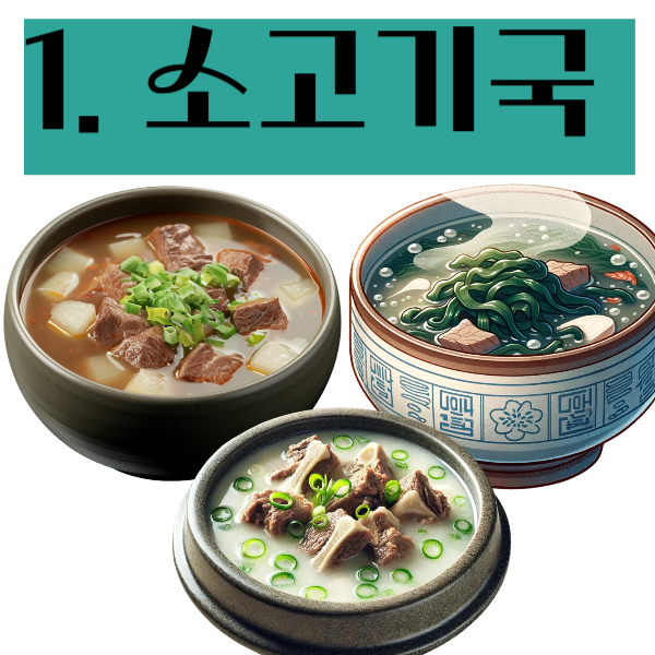 2) 소고기미역국: 요오드는 갑상선 호르몬 합성에 필수적인 성분으로 체내 기초 대사량을 높여줍니다.