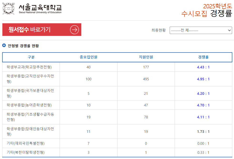 5. 2025학년도 서울교대 수시 모집 최종 경쟁률 확인 및 분석