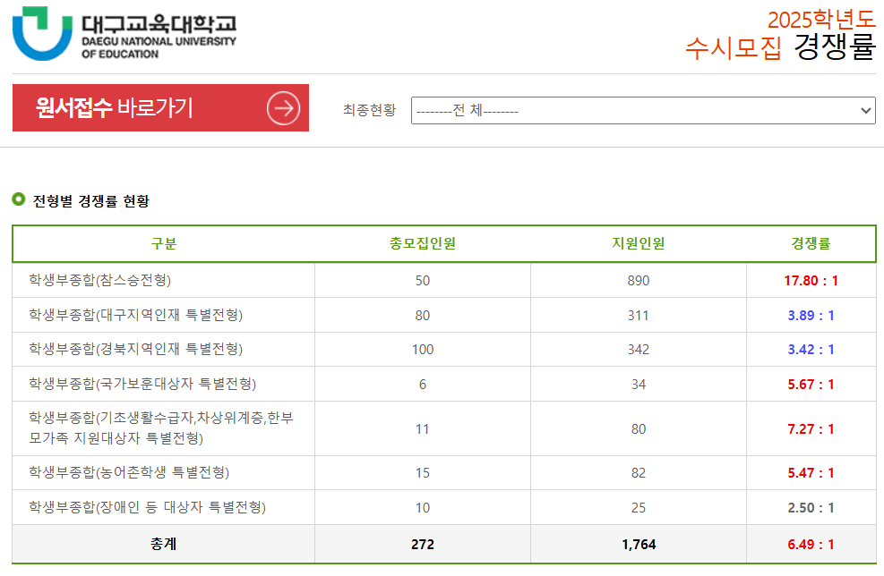4. 2025학년도 대구교대 수시 모집 최종 경쟁률 확인 및 분석