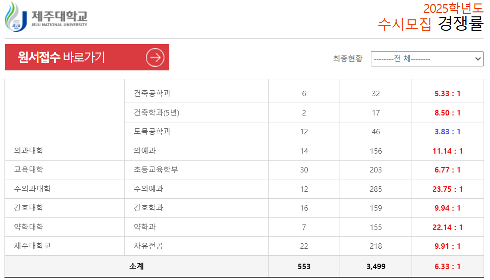 목차2025 실시간 대입 수시 모집 경쟁률 확인 방법 2025 대입 수시 모집 접수 기간 (9월9일~9월13일)에 대학 및 학과별 실시간 경쟁률이 공개됩니다. 경쟁률 공개 장소는 각 대학의 입학처 홈페이지
