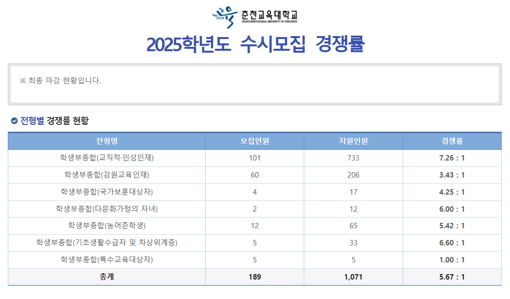 11. 2025학년도 춘천교대 수시 모집 최종 경쟁률 확인 및 분석