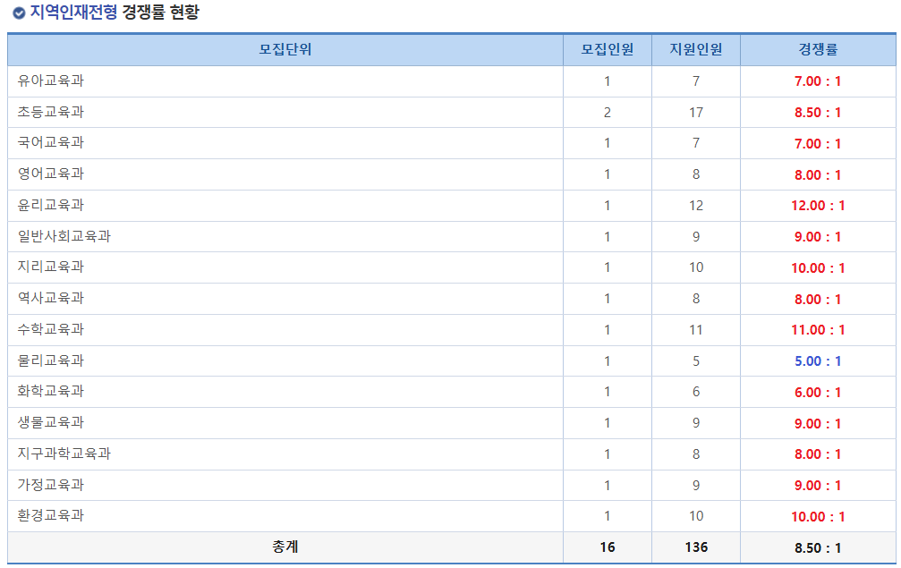 앞서 발표된 서울대학교 2025학년도 수시 모집 최종 경쟁률에서는 매우 충격적인 결과를 볼 수 있었습니다. 서울대학교 학교장 추천전형에서 1:1 미만의 경쟁률이 나온 것이었는데요. 바로 사범대학교에서 독어교육과, 불어교육과, 역사교육과 등에서 모집인원에 미달하는 경쟁률이 나온 것입니다. 서울대학교에서도 사범대학의 인기가 추락한 것을 볼 수 있습니다.