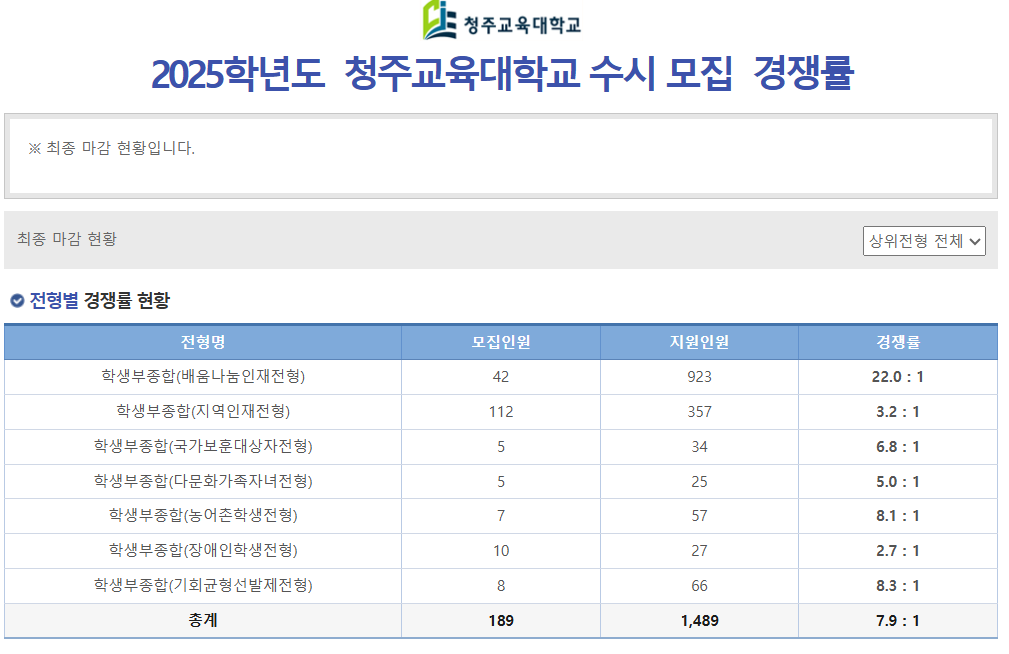 12. 2025학년도 청주교대 수시 모집 최종 경쟁률 확인 및 분석
