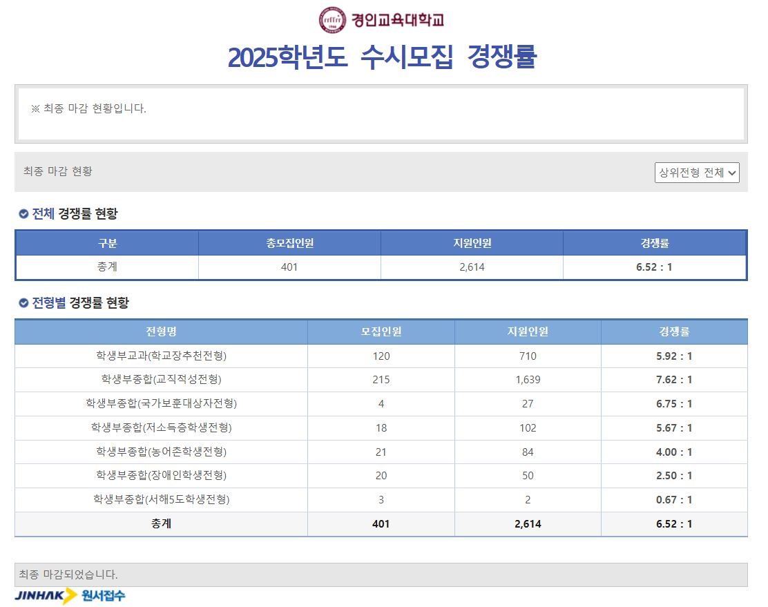 3. 2025학년도 경인교대 수시 모집 최종 경쟁률 확인 및 분석