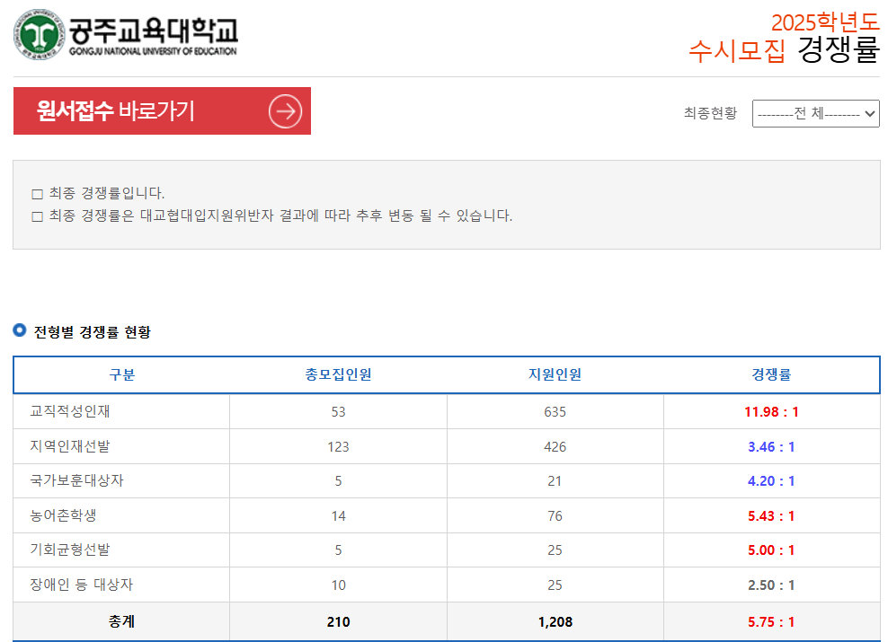 1. 2025학년도 공주교대 수시 모집 최종 경쟁률 확인 및 분석