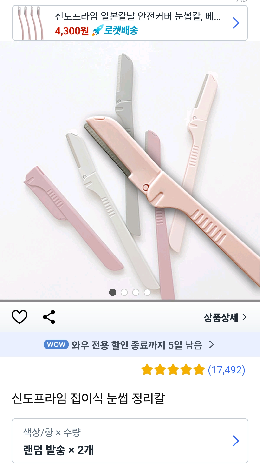 | 눈썹 칼 | 눈썹은 관상학에서 개인의 성격, 운세, 미래를 보여주는 중요한 상징으로 여겨지고 있습니다. 눈썹칼로 눈썹을 정리하면 인상 개선의 효과에 탁월하여 면접에서 좋은 첫인상을 보여줄 수 있습니다. |